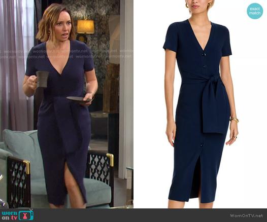 Gwen’s navy tie front dress on Days of our Lives