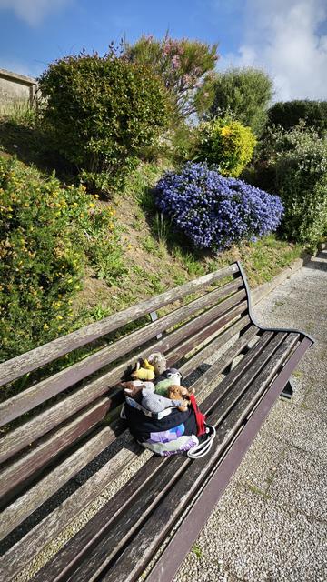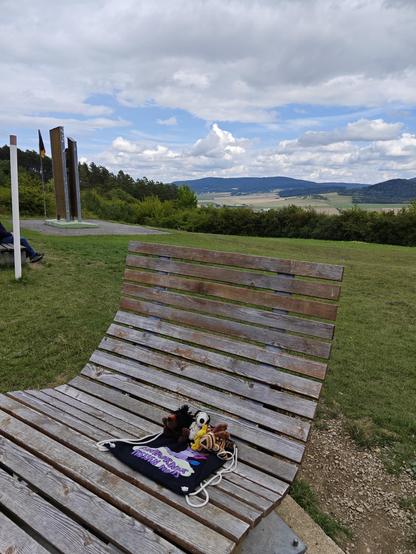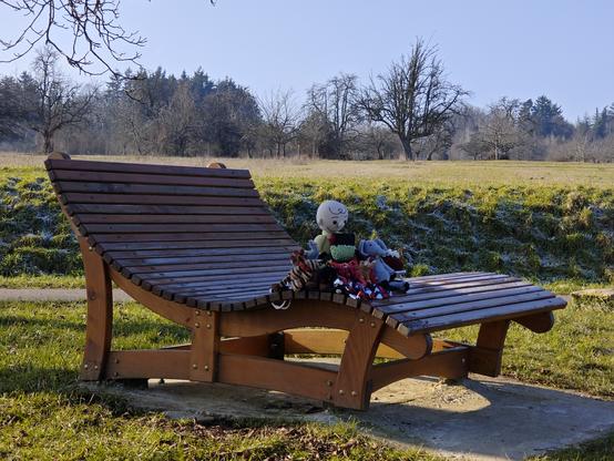 Dies ist die #Himmelsliege am Hohenwart, Natenoms und Kagubes #Pausenbank für Ihr tägliches #PausenbankSelfie beim #rausgeschafft, aufgenommen ein Jahr nach Natenoms Tod mit meinen Häkels