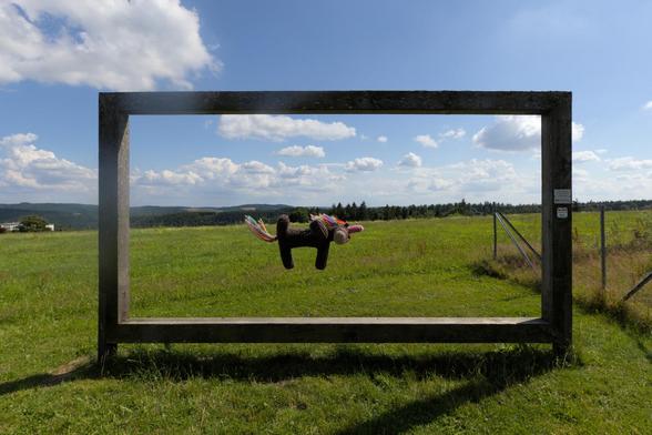 Hamwas beim #Wandanuhrlaub nämlich ordentlich #rausgeschafft und dann sogar diesen wunderschönen Bilderrahmen inne Landschaft¹ gefunden, woll – hat uns dann ganz berührt und an den kleinen 🐘 @ploggifanti vom 🚴 @natenom erinnert.
