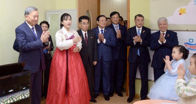 Trong khuôn khổ chuyến thăm cấp nhà nước tới Triều Tiên và dự lễ kỷ niệm 80 năm thành lập Đảng Lao động Triều Tiên, chiều 9/10 (theo giờ địa phương), Tổng Bí thư Tô Lâm tới thăm Trường mẫu giáo Kiêng Sang và lớp học mang tên Chủ tịch Hồ Chí Minh.