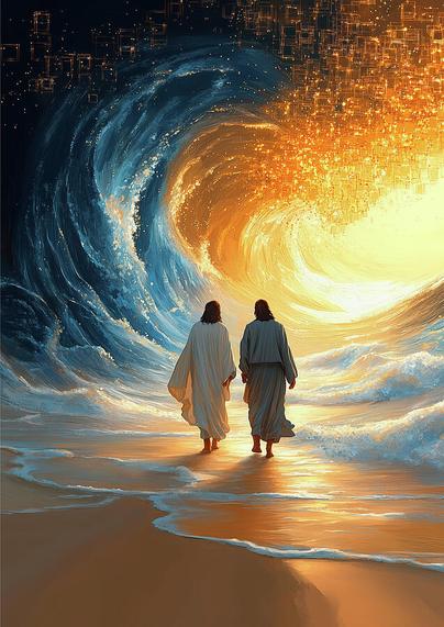 "Walking with Jesus on the beach, where peace meets purpose. 🌅
