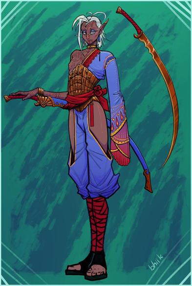 another character idea for the pathfinder campaign im to play in. an elven sword saint from a culture with a lot of chiral superstitions surrounding handedness. it's harder than you'd think to build an unarmored, dexterous swordsman character that's somewhat good.