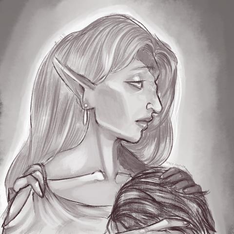 sketch portrait of my oc Belia comforting her brother Alexander. She's tired of his tantrums.