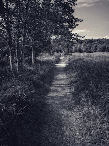 'Crossing the Great Meadow' (2023) -- Homeward Bound After a Hike, Shadows Lengthen Across the Tall Grasses and Marsh, Acadia National Park, ME