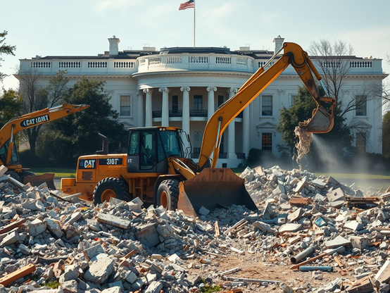 Trump takes a wrecking ball to the White House in on-the-nose metaphor