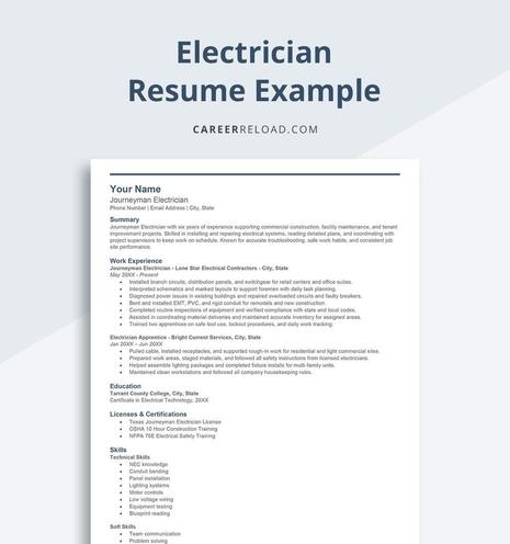Read more: https://www.careerreload.com/electrician-resume-examples/