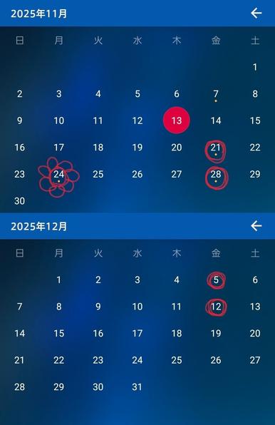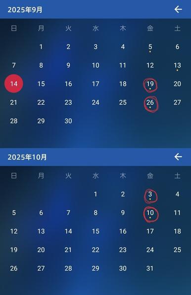 直近4週間の営業日も添付📎しておきます。今回は全て金曜日になりました!!