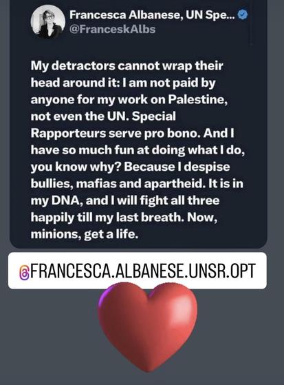 ❤️ love and solidarity to #FrancescaAlbanese ❤️