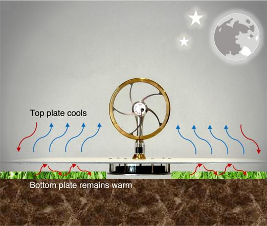 Ele funciona no mesmo princípio das tecnologias de resfriamento radiativo, ou refrigeração passiva, só que gera força mecânica.