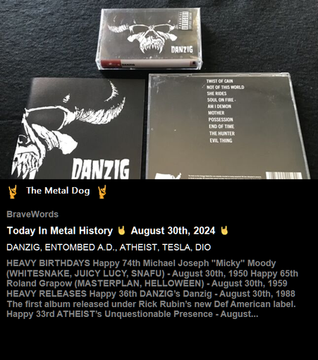 Today In Metal History ๐ค August 30th, 2024๐คDANZIG, ENTOMBED A.D., ATHEIST, TESLA, DIO