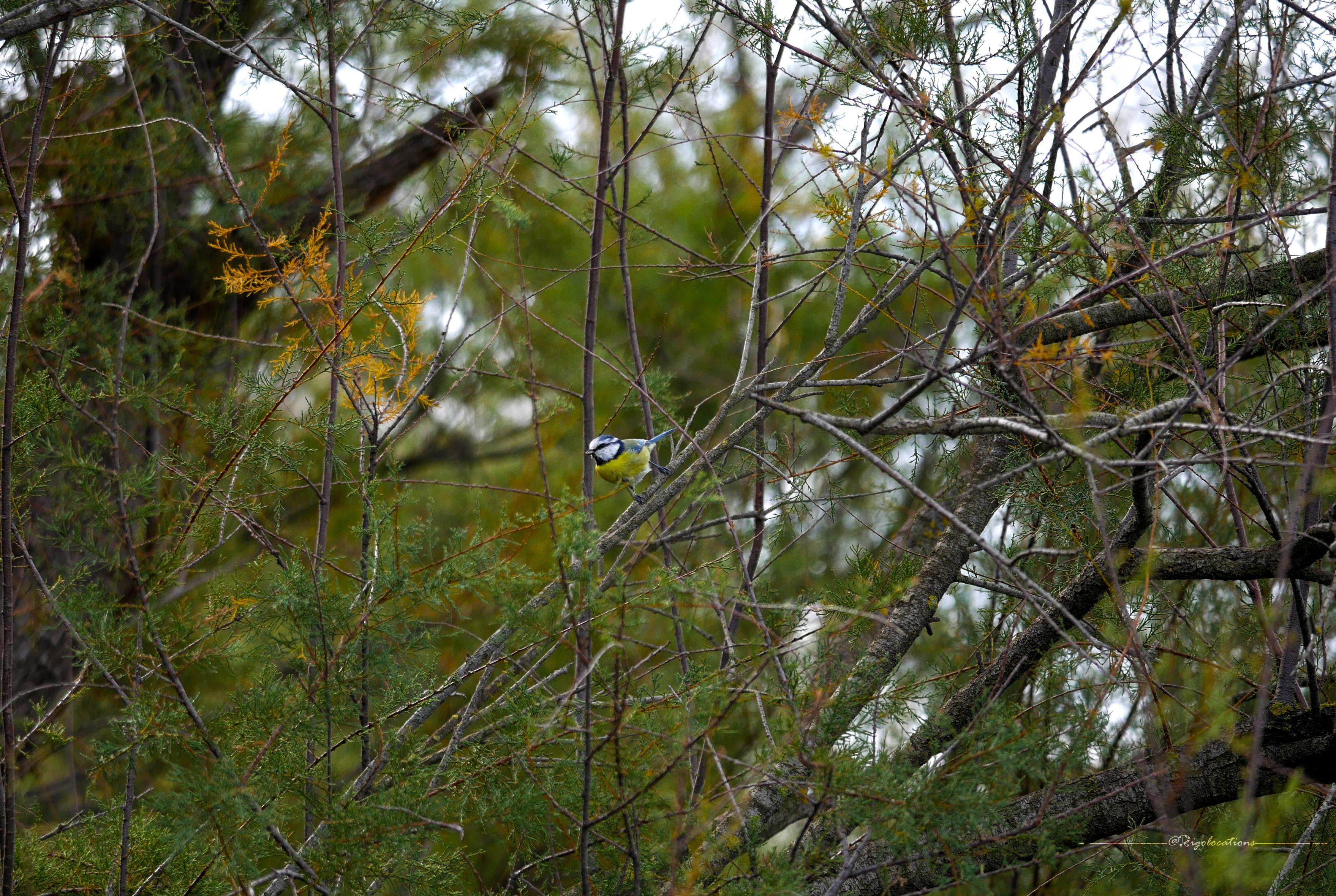 The Eurasian Blue Tit returned in later moments, sometimes pausing to watch me, sometimes diving from the tree canopy with wings spread wide, briefly illuminated by the rising sun—a small flash of living color against the still-waking world.