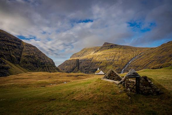 The small church located on the outer cliffs of the historic settlement, Saksun.