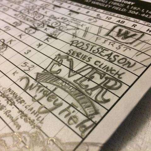 #aisle213 #annotation #AnthonyRizzo #Cardinals #Chicago #ChicagoCubs #ChrisDenorfia #ClaytonRichard #DexterFowler #drawing #ErnieBanks #FernandoRodney #flythew #FunWithBaseballScorecards #handWritten #handmade #HectorRondon #homeRun #illustration #JasonHammel #JavierBaez #JoeMaddon #JohnLackey #JorgeSoler #JustinGrimm #KerryWood #KrisBryant #KyleSchwarber #MattCarpenter #MattHolliday #MiguelMontero #mlb #nlds #notation #PalominoBlackwingPencil #pencil #postseason #recordBreaking #scoreboard #Scorecard #StLouisCardinals #StarlinCastro #stats #strikeouts #TommyLaStella #TravisWood #TrevorCahill #triple #wearegood #WrigleyField