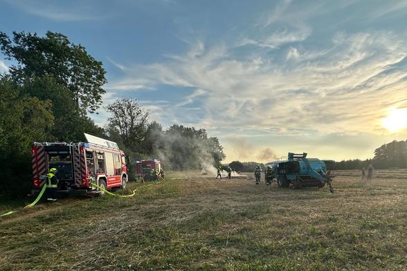 Brennende Ballenpresse in Finnentrop-Heggen