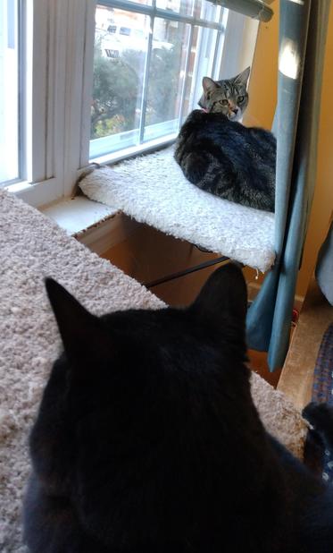 One of the wandering marauders, Peck, has joined Pax for a bit of birdwatching.🐦