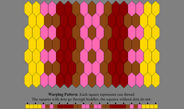 Color Sequence: Gold x4, (HotPink, SaddleBrown) x2, DarkRed x4, SaddleBrown x2, HotPink x2, SaddleBrown, HotPink x2, SaddleBrown x2, DarkRed x4, (SaddleBrown, HotPink) x2, Gold x4