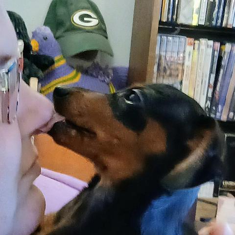 Stories from hubby at home: We walked on the left hand grass today, and Gertie lost her mind smelling the telephone pole. She was sniffing all over it with her tail wagging. She even stood up on Bucky's back to sniff higher!