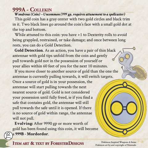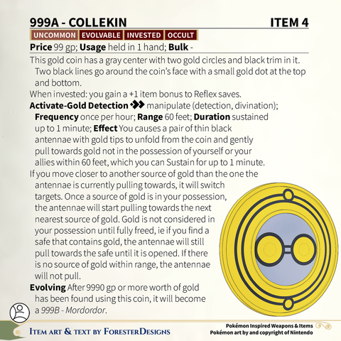 My #TTRPG #Pokemon #MagicItem of the Day in both #DnD and #PF2e, with a #Gimmighoul #coin to help you hunt for gold!