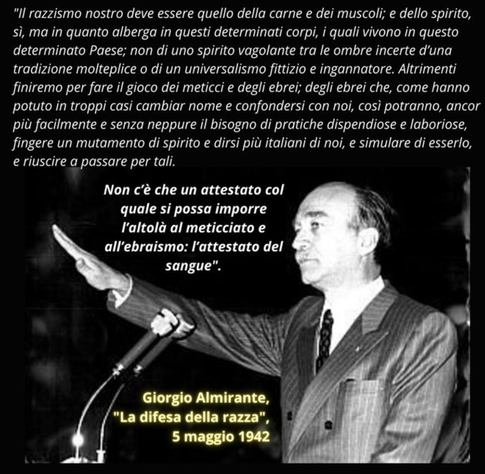 Questi temi furono oggetto di discussione al secondo congresso, che ebbe luogo a Roma nel 1949 e vide consolidarsi la presenza delle due anime antitetiche su pressoché tutte le questioni sollevate. C’era poi una terza corrente, più culturale e meno politica, che faceva riferimento al pensatore Julius Evola, tradizionalista, antililiberale, antimoderno, anticristiano e fautore di un “razzismo spirituale”. <20 Tale confronto, con diverse sfumature, incontri e scontri più o meno decisivi, ha scandito tutte le fasi della storia del Movimento sociale italiano. <21