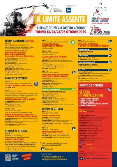 Edizione dedicata alle vittime del genocidio di Gaza e a tutte le giornaliste e i giornalisti uccisi nel mondo. “Il Limite Assente” è il tema delle “Giornate del Premio Roberto Morrione per il giornalismo investigativo”, che si terranno a Torino dal 23 al 25 ottobre 2025, con un’anteprima il 13 ottobre. Organizzate dall’associazione Amici di […]