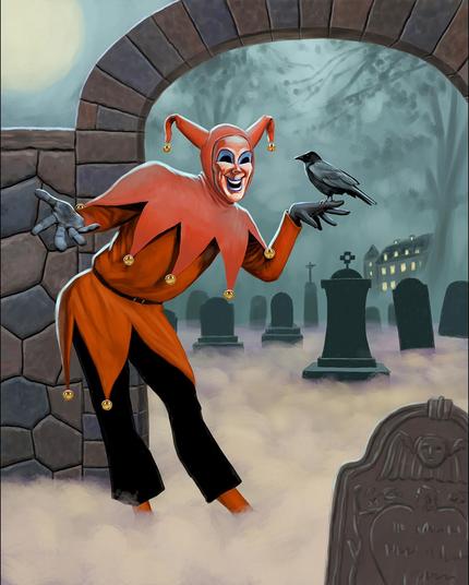 This painting is loosely based on Edgar Allan Poe's short story "The Masque Of The Red Death." I painted it for a show called "Spectre of the Raven," which was part of an immersive event called Edgar Allan Poe: A Tell-Tale Soirée in Stratford, Connecticut.