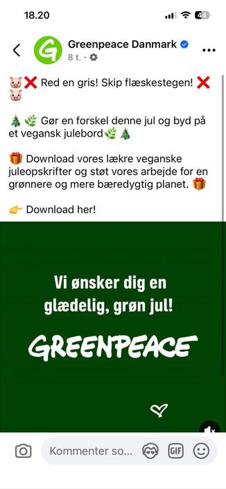 når jeg nu har været efter #alternativet fordi for dem er #grønt = #flæskesteg, så må jeg også rose #greenpeace for deres opslag om #grønt = #vegansk.