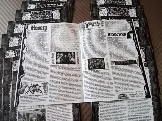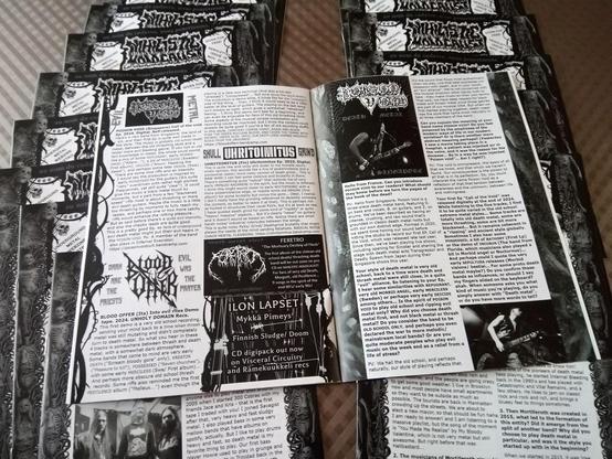 12 x A5 pages full of death metal, underground metal and close genres in a rather old school style.