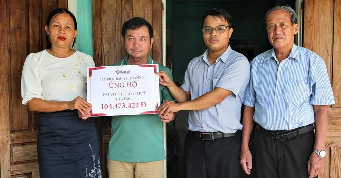 Báo VietNamNet vừa trao số tiền gần 120 triệu đồng bạn đọc gửi, ủng hộ em Võ Thị Cẩm Thùy (ở TP Đà Nẵng), nữ sinh nghèo vừa trúng tuyển đại học thì mắc ung thư máu. Võ Thị Cẩm Thuỳ nói, sự hỗ trợ này giúp em có thêm niềm tin, động lực điều trị bệnh.