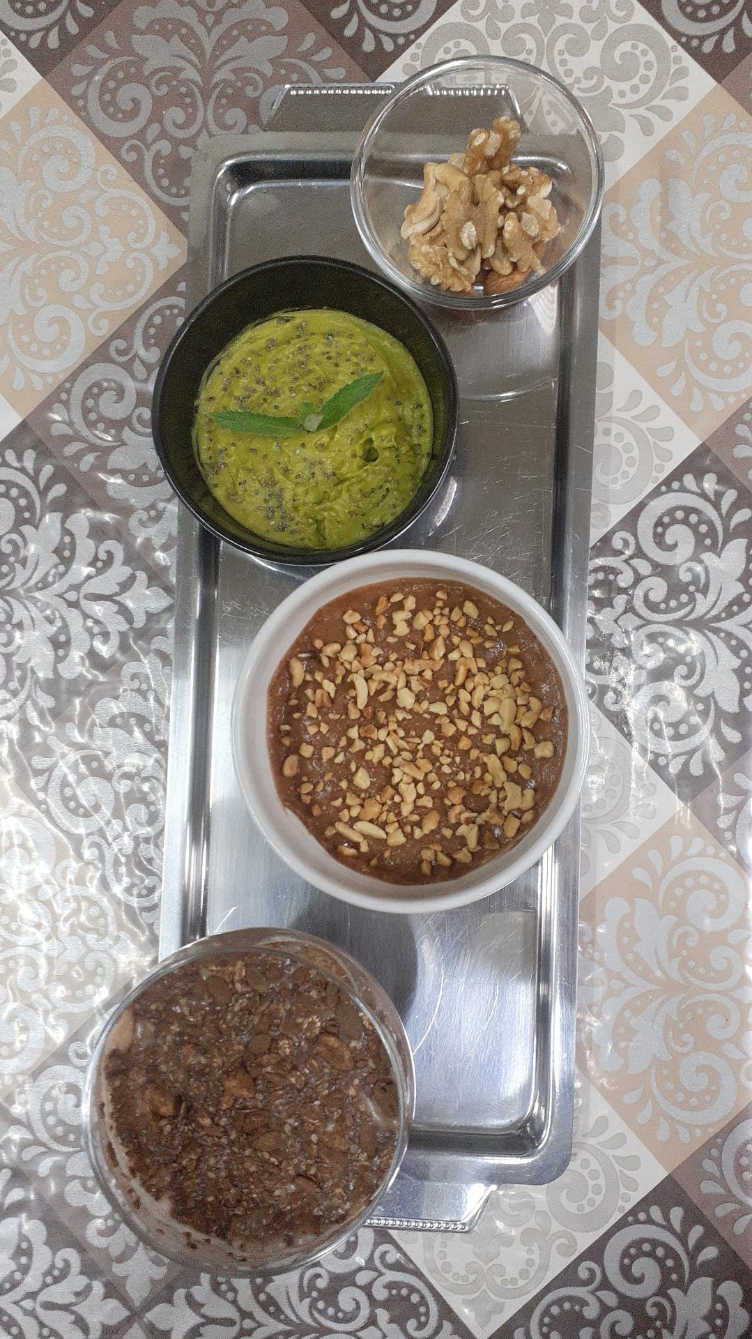 * abacate amassado, folhas de menta e sementes de chia