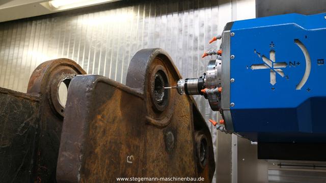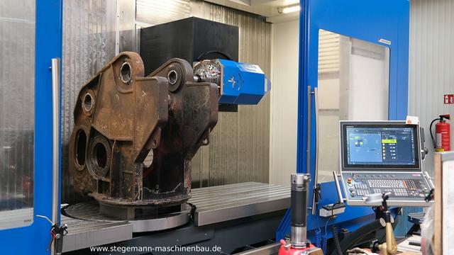 Bei stark beanspruchten Werkzeugen im Bereich der Abbruchtechnik kommt es häufig zu ausgeschlagenen Passungen. In solchen Fällen setzen wir auf eine bewährte Vorgehensweise: Die beschädigten Stellen werden von uns fachgerecht aufgepanzert und anschließend auf unserem Bearbeitungszentrum präzise nachgearbeitet – bis die ursprüngliche Passung wiederhergestellt ist.