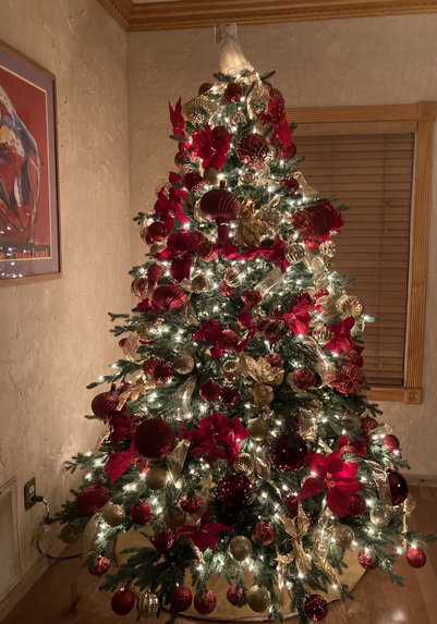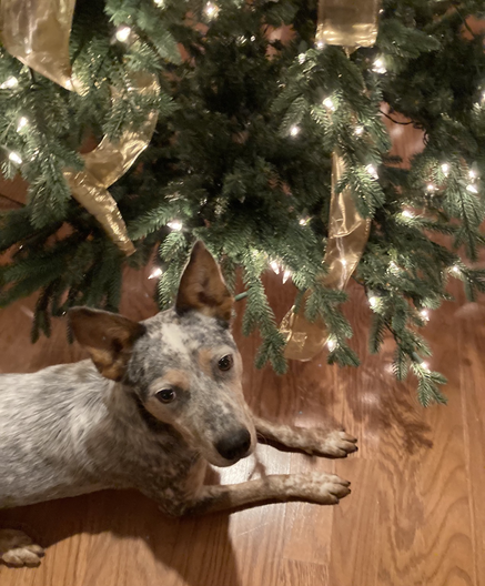 Finally got the tree finished in spite of Keeley’s help. Now she’s crawling under it! 😂