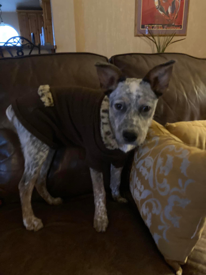 Miss Keeley a year ago. She was so cute……..for a hot minute before she ate her sweater & both of my throw pillows. 🙄