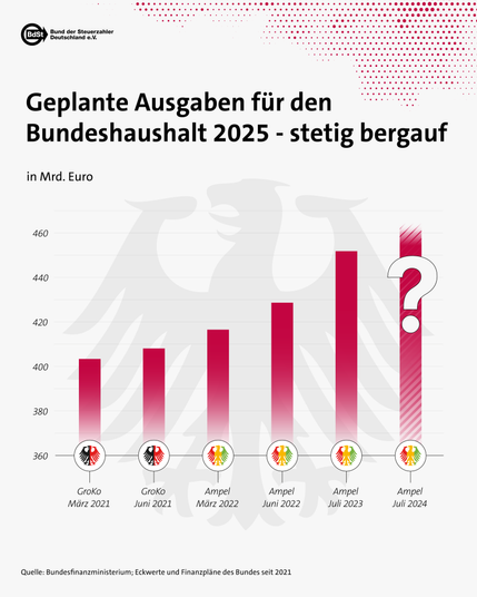 Bei meiner Suche bin ich noch über eine Grafik der #Lobbybutze von Reiner #Holznagel, #BundDerSteuerzahler (#BdSt), gestolpert, in der angeblich stetig steigende #Ausgaben der #Ampel angeprangert werden.