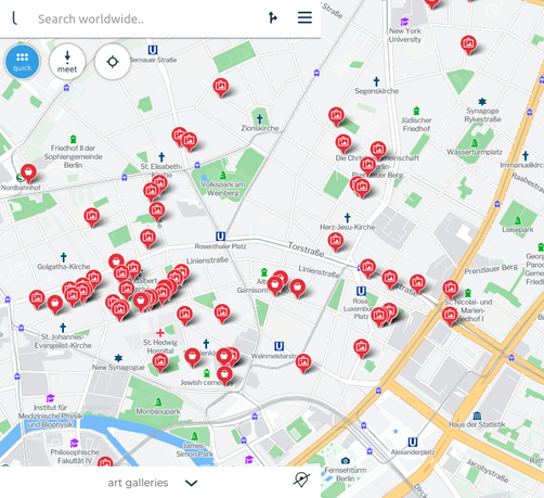 Attached: 1 image If you like art (like me) and you're having a bored day (like me!) then get yourself a public transport day-ticket and do some gallery hopping. There's always some areas with a bit more galleries then usual. Example: Berlin, north area. https://www.lokjo.com/#m=16:52.52844:13.40373:s=037 This goes also for other stuff, check the Quick menu (blue round button) for suggestions. Have a great weekend guys. 😊 #galleries #berlin #weekend #galleriehopping #saturday #sunday #imbored #art #CreativeToots #inspiration