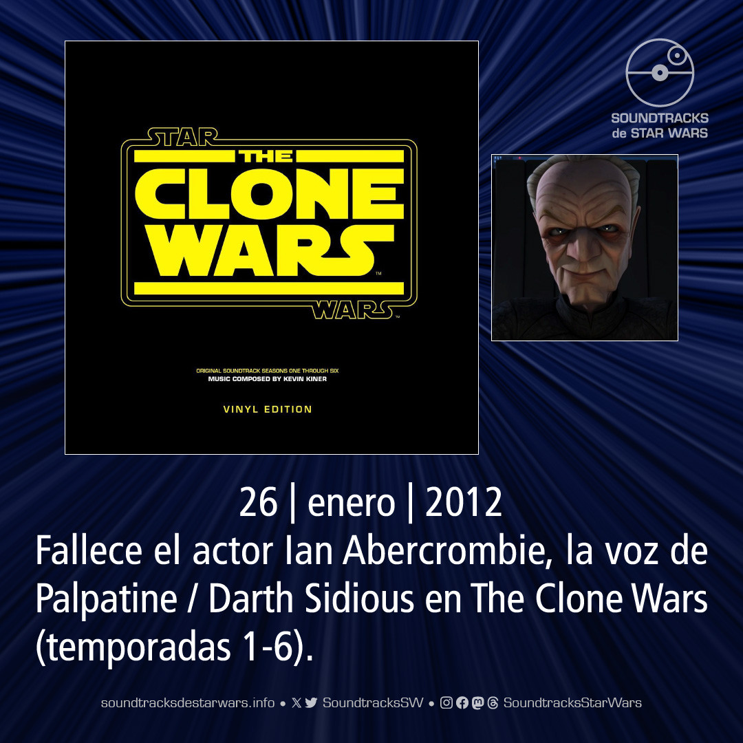 El 11 de septiembre de 1934 nace el actor Ian Abercrombie, la voz de Palpatine / Darth Sidious en The Clone Wars (temporadas 1-6).