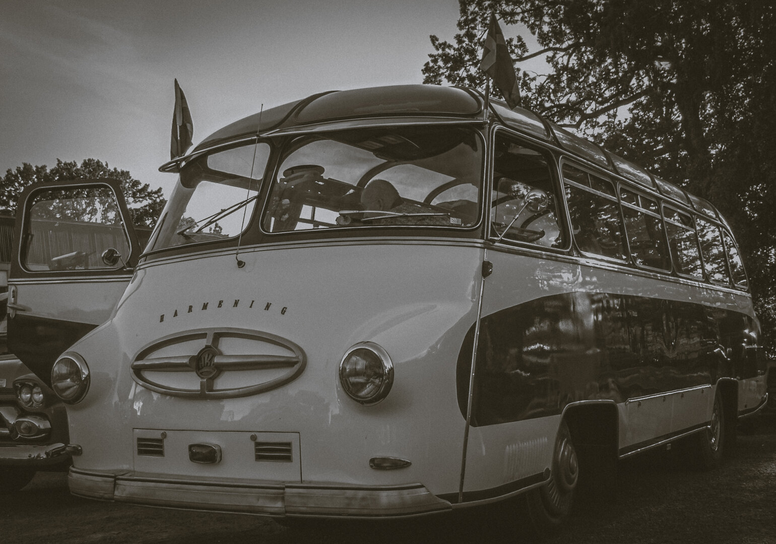 #Harmening #HKBClubbus #1957Bus #VintageBus #StreamlinedDesign #GermanEngineering #HistoricVehicles #BusRestoration #DocumentaryPhotography #SepiaTone #VisualAnthropology #RetroTransport #IndustrialHeritage #SwedishCraftsmanship #ClassicMobility #Photojournalism #Pixelfed