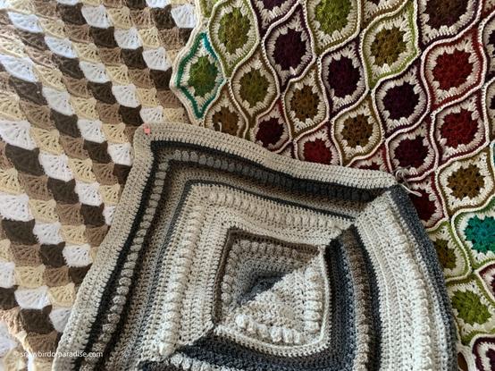 Today I donated a few bags of items to the thrift store and among them was the small green blanket. I considered including the green cardigan, but I didn’t. I took it out of the closet, held it up to look at it, laid it on the bed, wondered what to do about it, and then I put it back. It didn’t go to the thrift store. I was half-afraid it would meet its grey cousin and they would swap notes on my ineptitude, so the green cardigan awaits future decision-making.