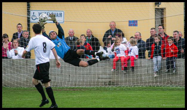 It was October 2007, and I was in Cobh to photograph the game between Cobh Ramblers and Dundalk FC. The visitors were beaten 1-0 but Chris Bennion stopped this attempt on goal.
