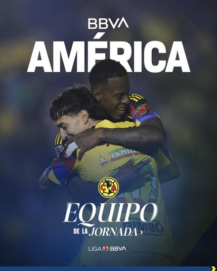 El @ClubAmerica@twitter.com fue votado como el #EquipoDeLaJornada, presentado por @BBVA_Mex@twitter.com. 🦅