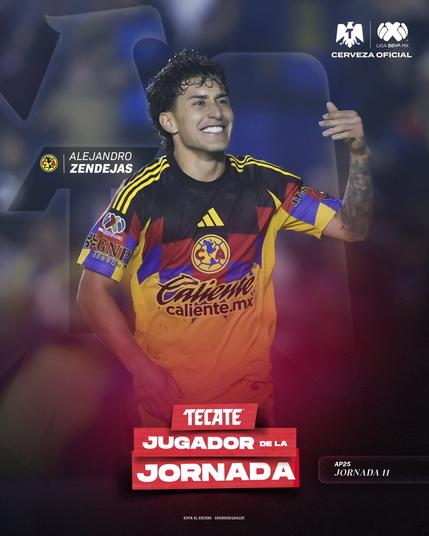 Alejandro Zendejas del @ClubAmerica@twitter.com es el #TecateJugadorDeLaJornada 1️⃣1️⃣. 🟡