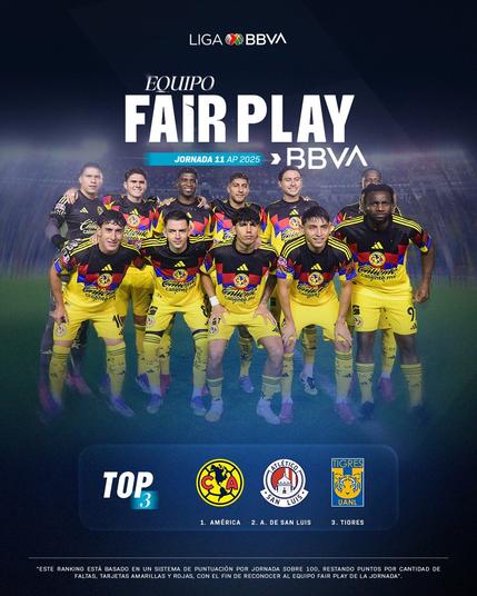 El #EquipoFairPlay de la jornada 1️⃣1️⃣ es el @ClubAmerica@twitter.com. 🟡