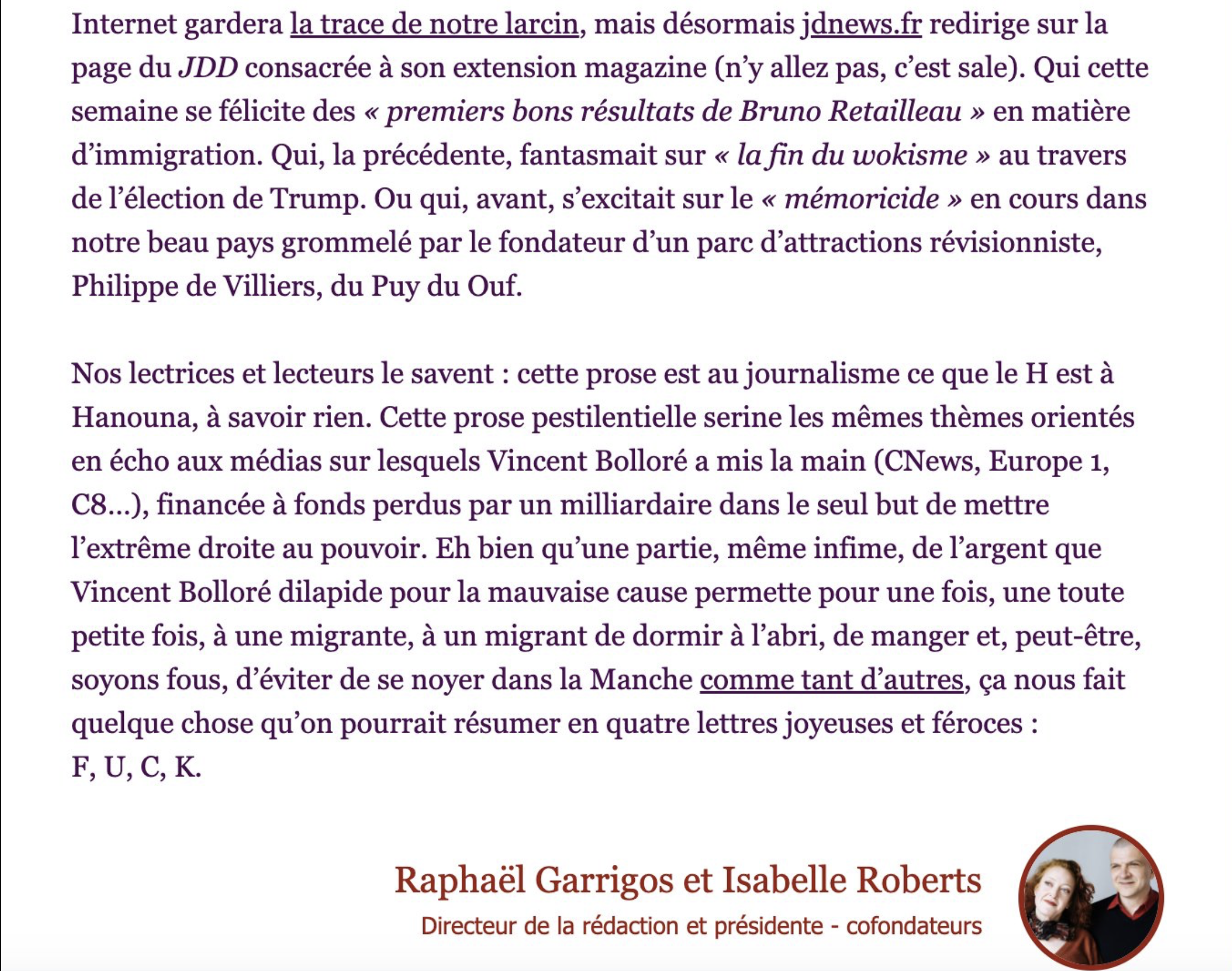 Une fois n'est pas coutume (je dis ça pour la 2ème fois cette semaine, c'est officiel, les digues sautent...), mais je vous propose dans le pouët qui suit l'interview complète de Wauquiez au #JDNews de #Bolloré.