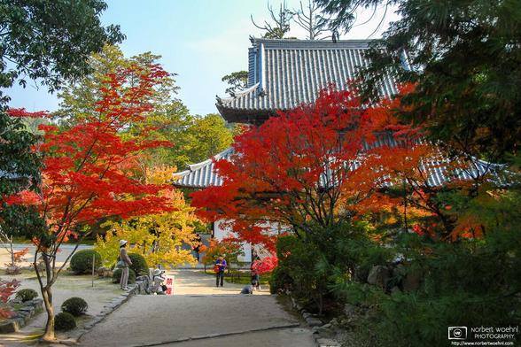 It is cooling down now, and in a few weeks we should be able to enjoy autumn colors such as these at Hofukuji Temple in Soja, Okayama Pref.. ๐