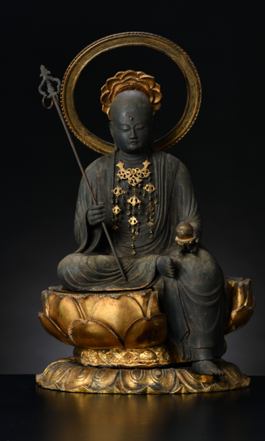 #Buddhism and usually depicted as a Buddhist monk. Often regarded as the bodhisattva of hell-beings, as well as the guardian of children and patron deity of deceased children and aborted fetuses in Japanese culture, where he is known as