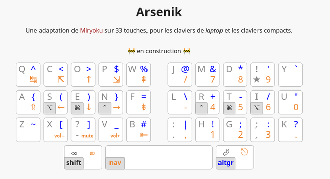 - j'explore l'approche #miryoku avec #arsenik et #kanata pour apprendre les autres touches que les lettres https://ergol.org/claviers/arsenik/