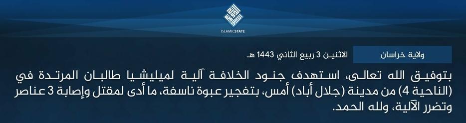 #ISIS_K claiming it targeted a Taliban vehicle in an IED attack yesterday killing 3