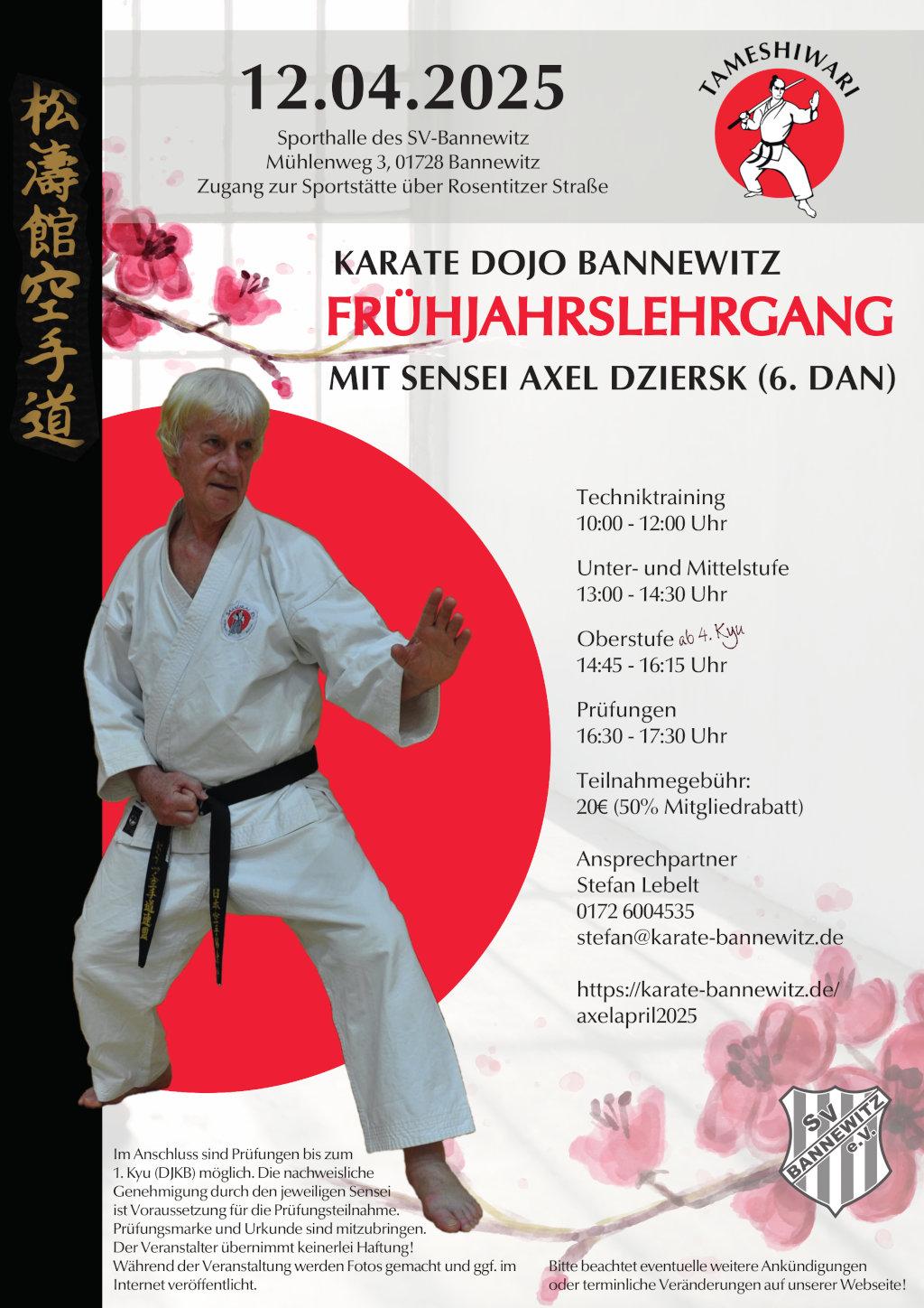 Wie in jedem Jahr besucht uns auch 2025 wieder unser Freund und Sensei Axel Dziersk aus Berlin. Am 12.04.2025 veranstalten wir unseren diesjährigen Frühjahrslehrgang in unserem Dojo in Bannewitz.