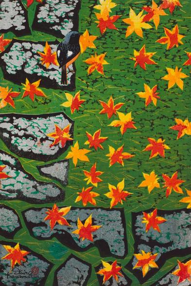 https://birdwatchinghq.com/birds-of-Japan/ #ShinHanga #SosakuHanga #KasamatsuShiro #Art #Showa #Autumn ##AutumnLeaves #Birds #DaurianRedstart #Japan