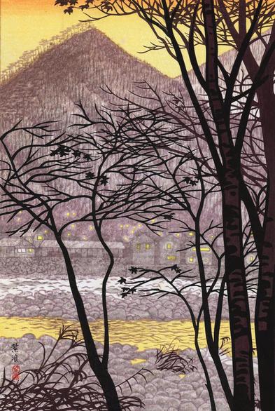 https://matcha-jp.com/en/4040 #ShinHanga #SosakuHanga #Art #Showa #KasamatsuShiro #Autumn #Sunset #Minakami #Gunma #Japan