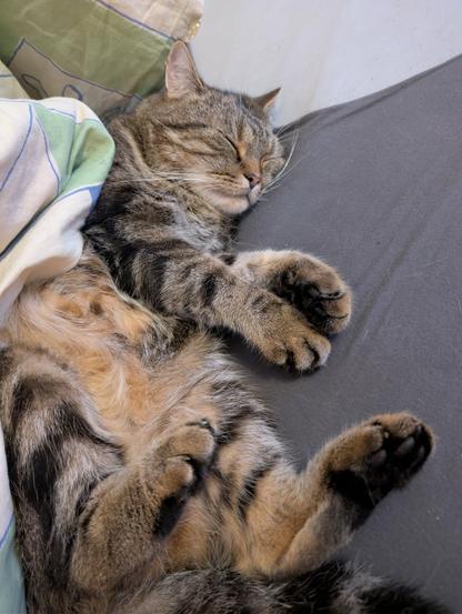 „Wenn ich mich auf die Füße lege, bleibt der Mensch still – sonst gibt’s Krallen!“ Ein bewährtes Trainingssystem. 😹